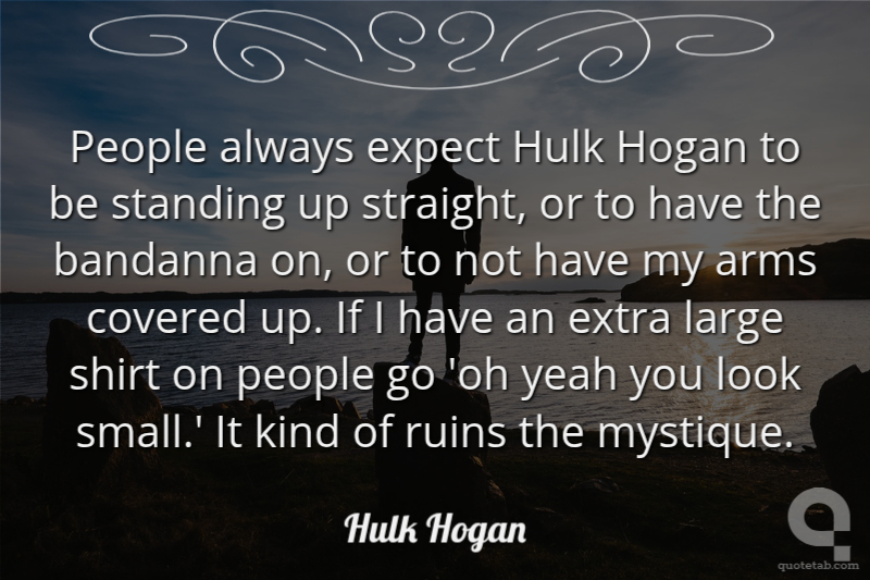 People always expect Hulk Hogan to be standing up straight, or to have the bandanna on, or to not have my arms covered up. If I have an extra large shirt on people go 'oh yeah you look small.' It kind of ruins the mystique.