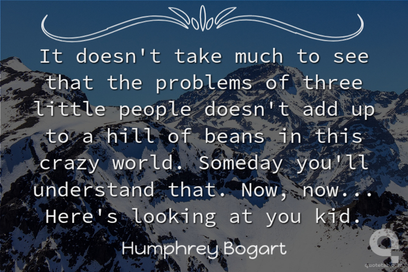 It doesn't take much to see that the problems of three little people doesn't add up to a hill of beans in this crazy world. Someday you'll understand that. Now, now... Here's looking at you kid.