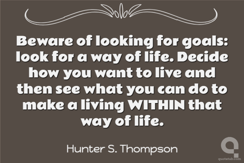Beware of looking for goals: look for a way of life. Decide how you want to live and then see what you can do to make a living WITHIN that way of life.