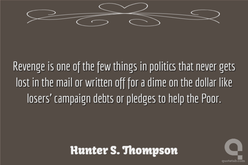 Revenge is one of the few things in politics that never gets lost in the mail or written off for a dime on the dollar like losers' campaign debts or pledges to help the Poor.