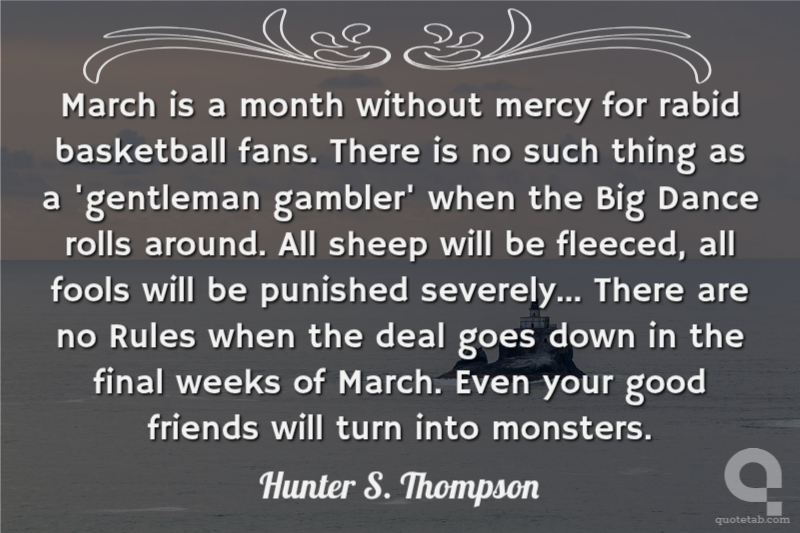 March is a month without mercy for rabid basketball fans. There is no such thing as a 'gentleman gambler' when the Big Dance rolls around. All sheep will be fleeced, all fools will be punished severely... There are no Rules when the deal goes down in the final weeks of March. Even your good friends will turn into monsters.
