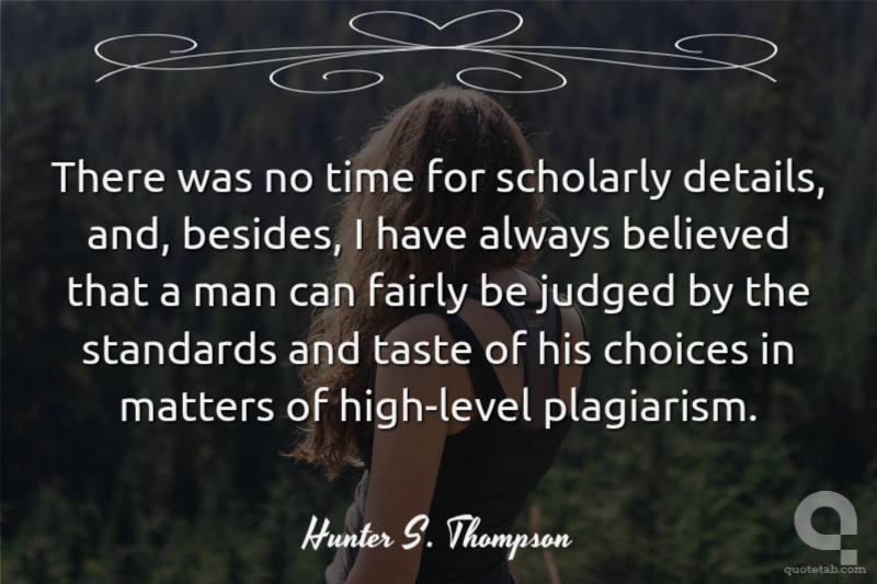 There was no time for scholarly details, and, besides, I have always believed that a man can fairly be judged by the standards and taste of his choices in matters of high-level plagiarism.