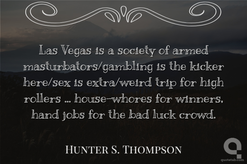 Las Vegas is a society of armed masturbators/gambling is the kicker here/sex is extra/weird trip for high rollers ... house-whores for winners, hand jobs for the bad luck crowd.