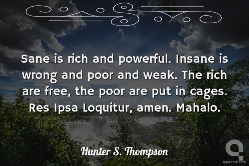 Sane is rich and powerful. Insane is wrong and poor and weak. The rich are free, the poor are put in cages. Res Ipsa Loquitur, amen. Mahalo.