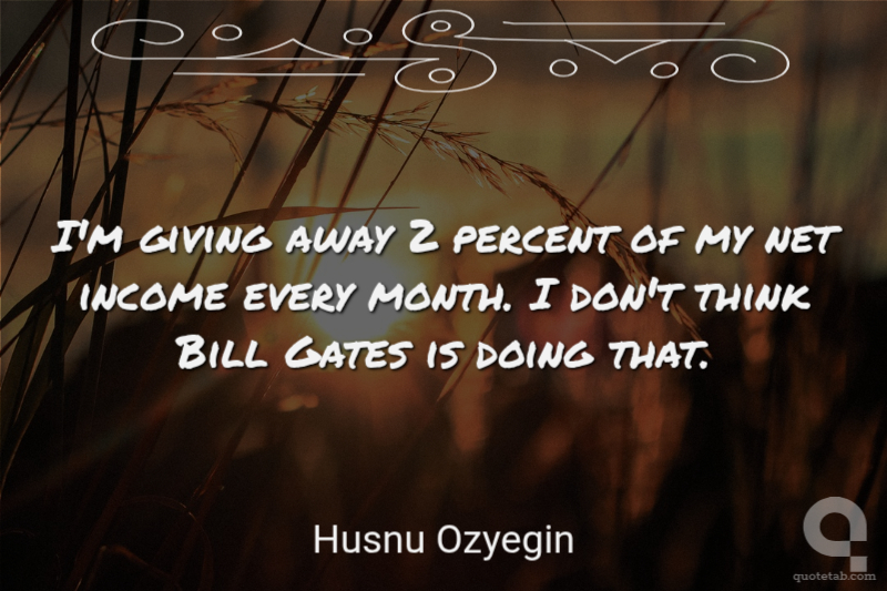 I'm giving away 2 percent of my net income every month. I don't think Bill Gates is doing that.