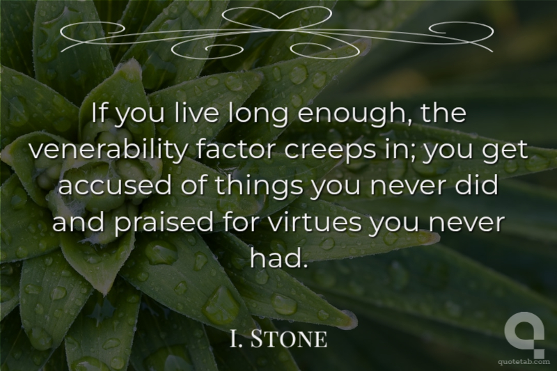 If you live long enough, the venerability factor creeps in; you get accused of things you never did and praised for virtues you never had.