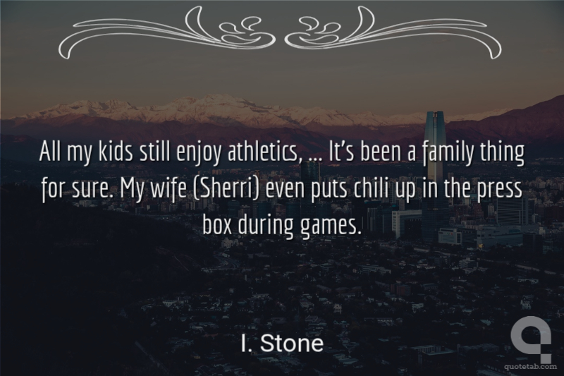 All my kids still enjoy athletics, ... It's been a family thing for sure. My wife (Sherri) even puts chili up in the press box during games.