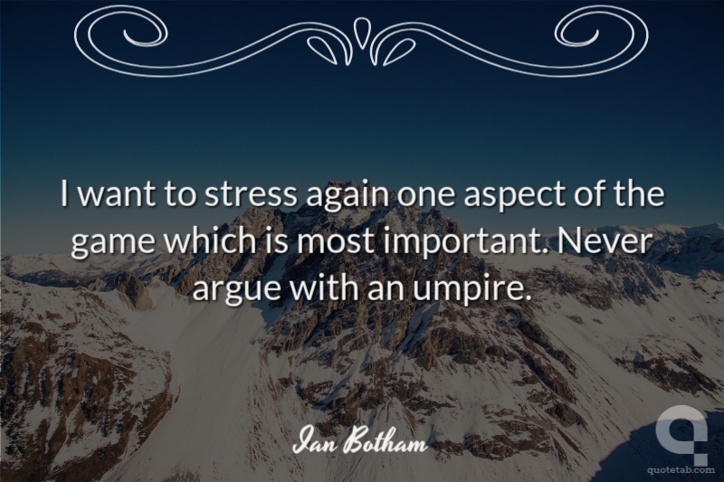 I want to stress again one aspect of the game which is most important. Never argue with an umpire.