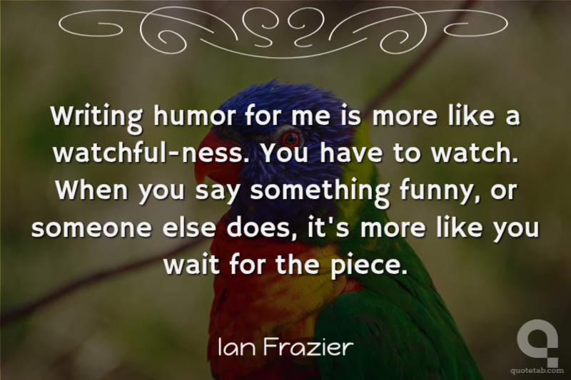 Writing humor for me is more like a watchful-ness. You have to watch. When you say something funny, or someone else does, it's more like you wait for the piece.
