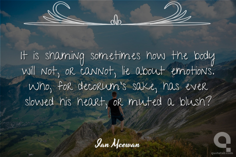 It is shaming sometimes how the body will not, or cannot, lie about emotions. Who, for decorum’s sake, has ever slowed his heart, or muted a blush?