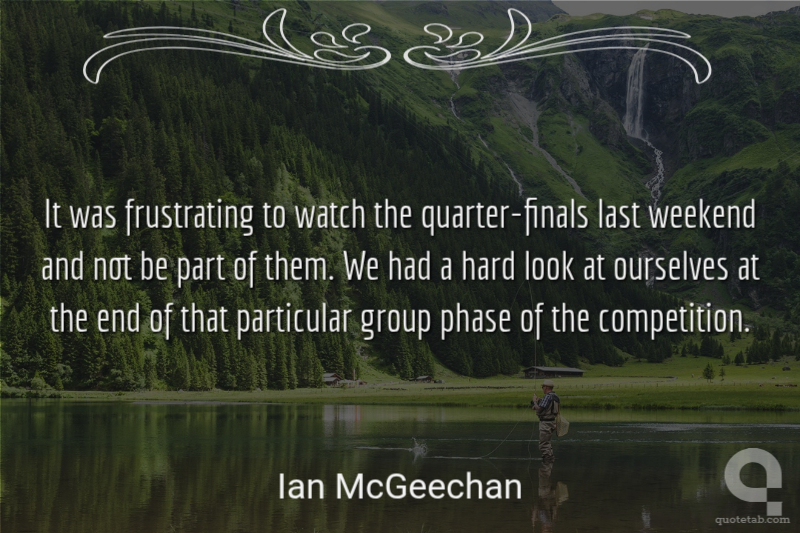 It was frustrating to watch the quarter-finals last weekend and not be part of them. We had a hard look at ourselves at the end of that particular group phase of the competition.