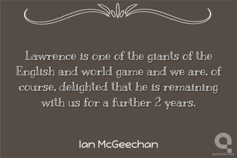 Lawrence is one of the giants of the English and world game and we are, of course, delighted that he is remaining with us for a further 2 years.