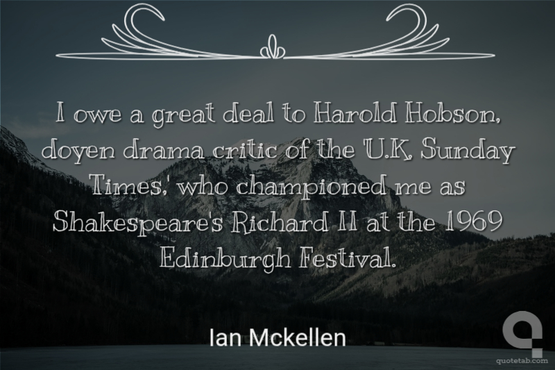 I owe a great deal to Harold Hobson, doyen drama critic of the 'U.K. Sunday Times,' who championed me as Shakespeare's Richard II at the 1969 Edinburgh Festival.