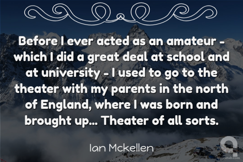 Before I ever acted as an amateur - which I did a great deal at school and at university - I used to go to the theater with my parents in the north of England, where I was born and brought up... Theater of all sorts.