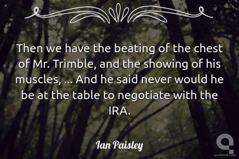 Then we have the beating of the chest of Mr. Trimble, and the showing of his muscles, ... And he said never would he be at the table to negotiate with the IRA.