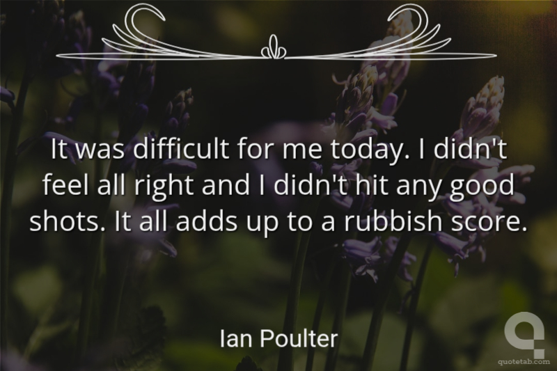 It was difficult for me today. I didn't feel all right and I didn't hit any good shots. It all adds up to a rubbish score.