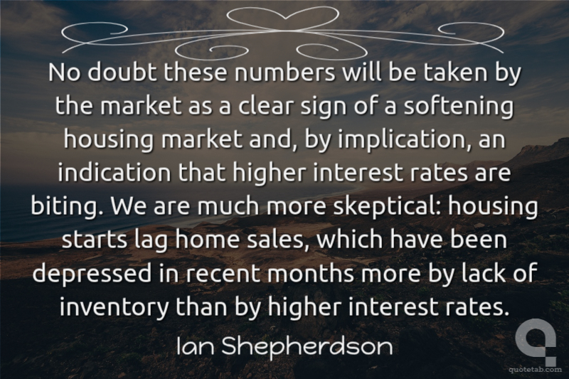 No doubt these numbers will be taken by the market as a clear sign of a softening housing market and, by implication, an indication that higher interest rates are biting. We are much more skeptical: housing starts lag home sales, which have been depressed in recent months more by lack of inventory than by higher interest rates.