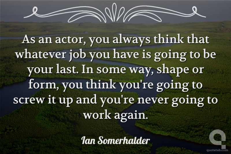 As an actor, you always think that whatever job you have is going to be your last. In some way, shape or form, you think you're going to screw it up and you're never going to work again.