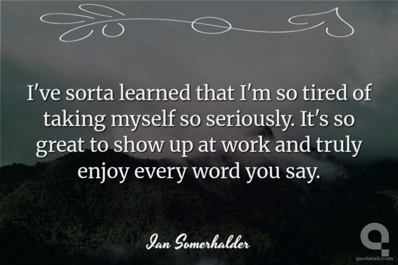 I've sorta learned that I'm so tired of taking myself so seriously. It's so great to show up at work and truly enjoy every word you say.