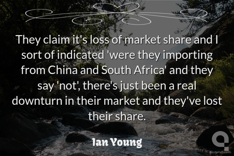 They claim it's loss of market share and I sort of indicated 'were they importing from China and South Africa' and they say 'not', there's just been a real downturn in their market and they've lost their share.