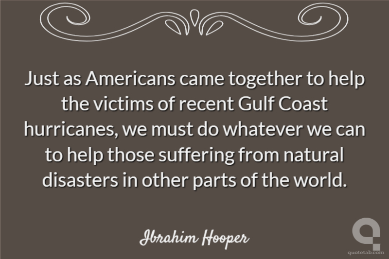 Just as Americans came together to help the victims of recent Gulf Coast hurricanes, we must do whatever we can to help those suffering from natural disasters in other parts of the world.