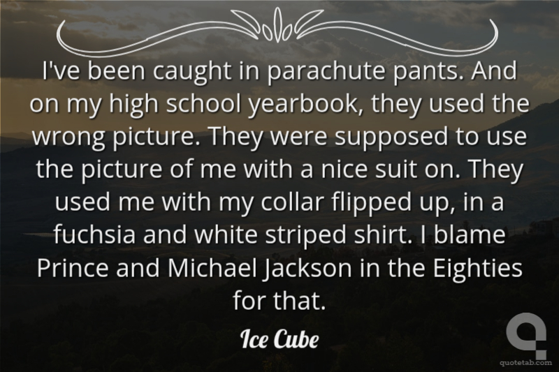 I've been caught in parachute pants. And on my high school yearbook, they used the wrong picture. They were supposed to use the picture of me with a nice suit on. They used me with my collar flipped up, in a fuchsia and white striped shirt. I blame Prince and Michael Jackson in the Eighties for that.