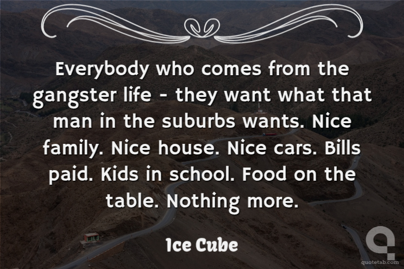 Everybody who comes from the gangster life - they want what that man in the suburbs wants. Nice family. Nice house. Nice cars. Bills paid. Kids in school. Food on the table. Nothing more.