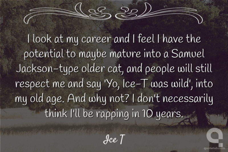 I look at my career and I feel I have the potential to maybe mature into a Samuel Jackson-type older cat, and people will still respect me and say 'Yo, Ice-T was wild', into my old age. And why not? I don't necessarily think I'll be rapping in 10 years.