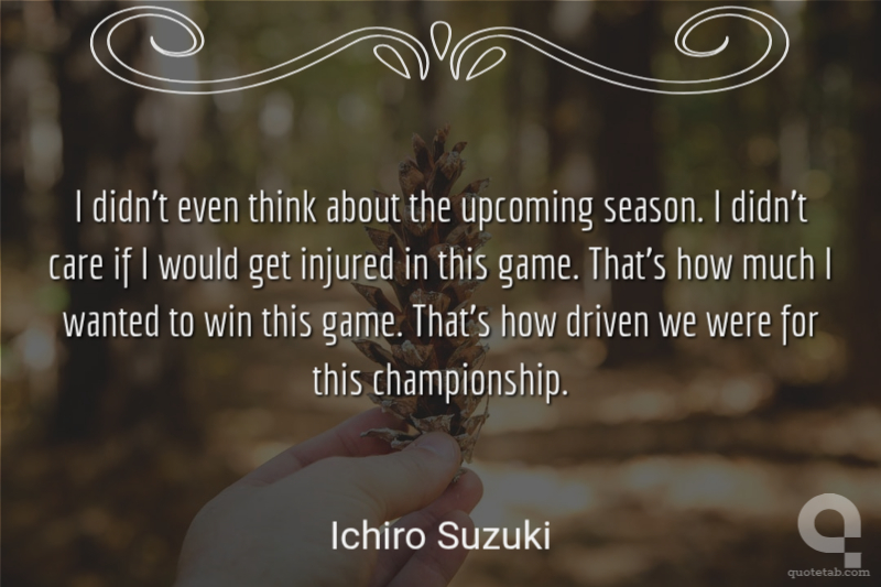 I didn't even think about the upcoming season. I didn't care if I would get injured in this game. That's how much I wanted to win this game. That's how driven we were for this championship.