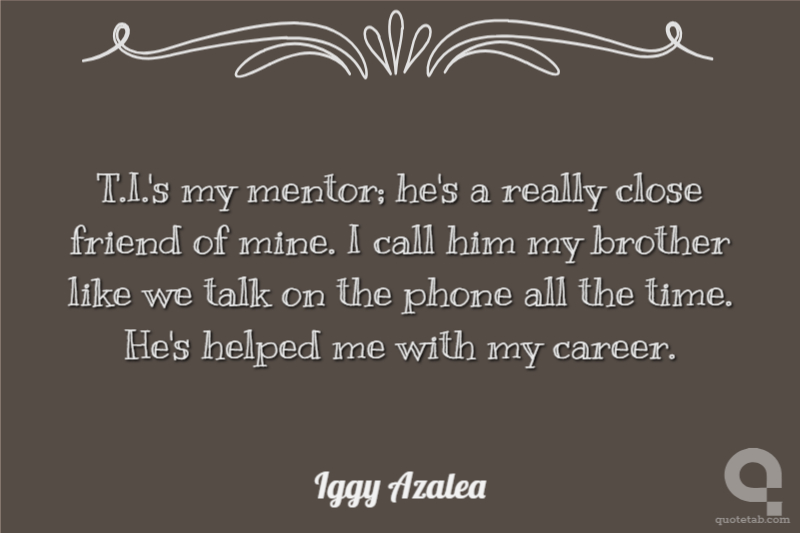 T.I.'s my mentor; he's a really close friend of mine. I call him my brother like we talk on the phone all the time. He's helped me with my career.