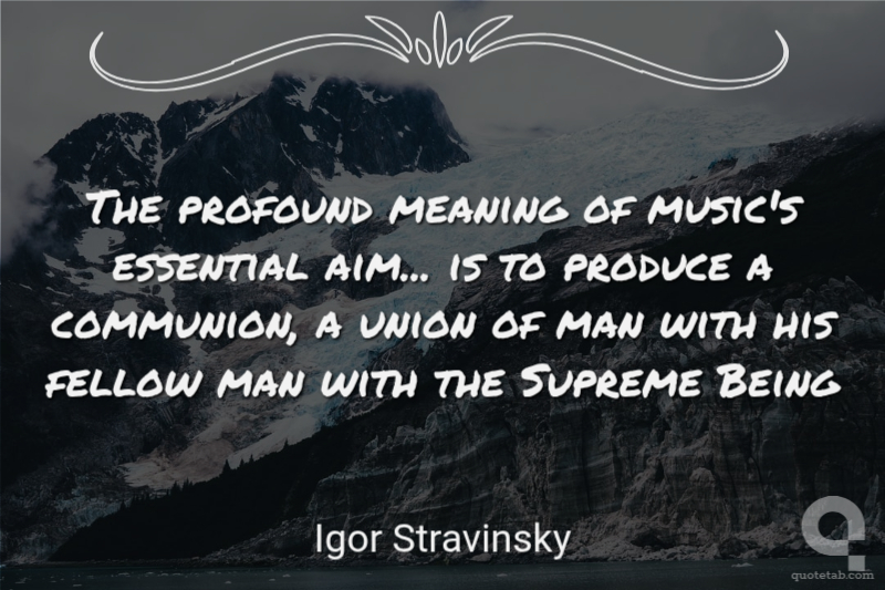 The profound meaning of music's essential aim... is to produce a communion, a union of man with his fellow man with the Supreme Being