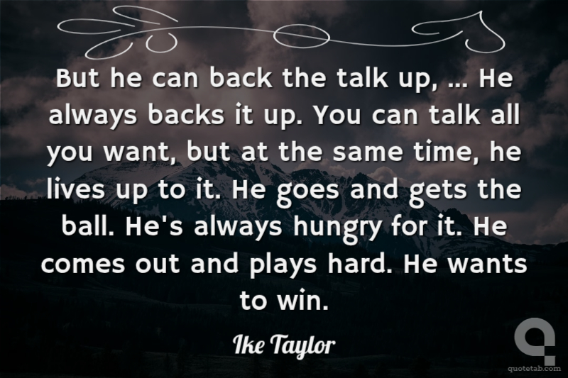 But he can back the talk up, ... He always backs it up. You can talk all you want, but at the same time, he lives up to it. He goes and gets the ball. He's always hungry for it. He comes out and plays hard. He wants to win.