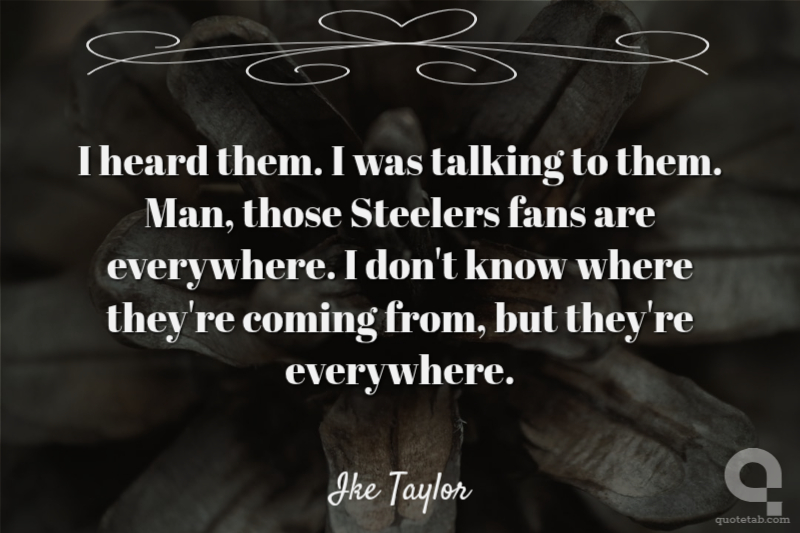 I heard them. I was talking to them. Man, those Steelers fans are everywhere. I don't know where they're coming from, but they're everywhere.