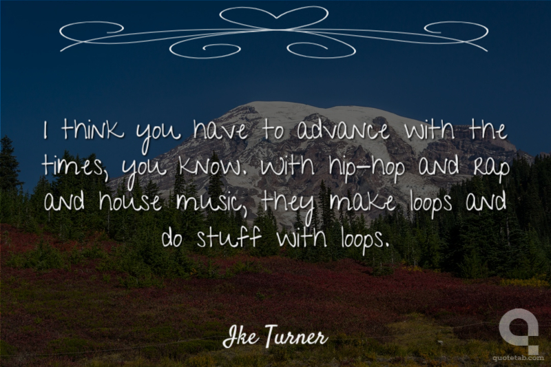 I think you have to advance with the times, you know. With hip-hop and rap and house music, they make loops and do stuff with loops.