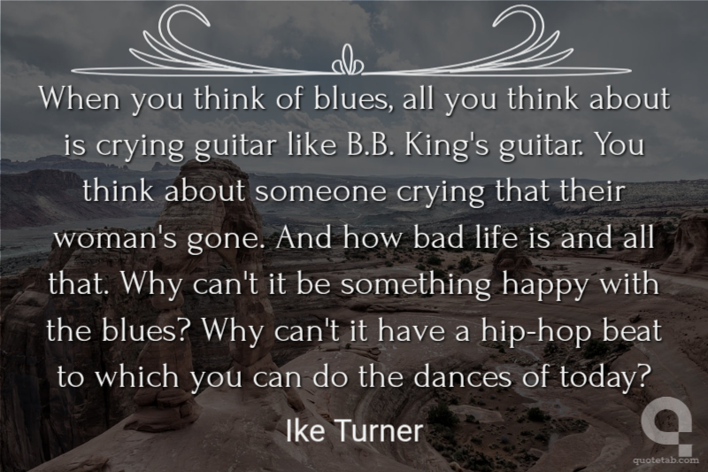 When you think of blues, all you think about is crying guitar like B.B. King's guitar. You think about someone crying that their woman's gone. And how bad life is and all that. Why can't it be something happy with the blues? Why can't it have a hip-hop beat to which you can do the dances of today?