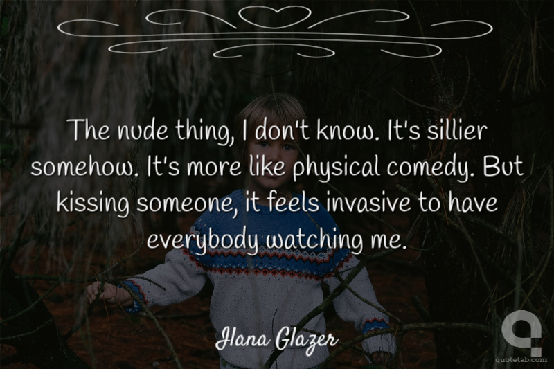 The nude thing, I don't know. It's sillier somehow. It's more like physical comedy. But kissing someone, it feels invasive to have everybody watching me.