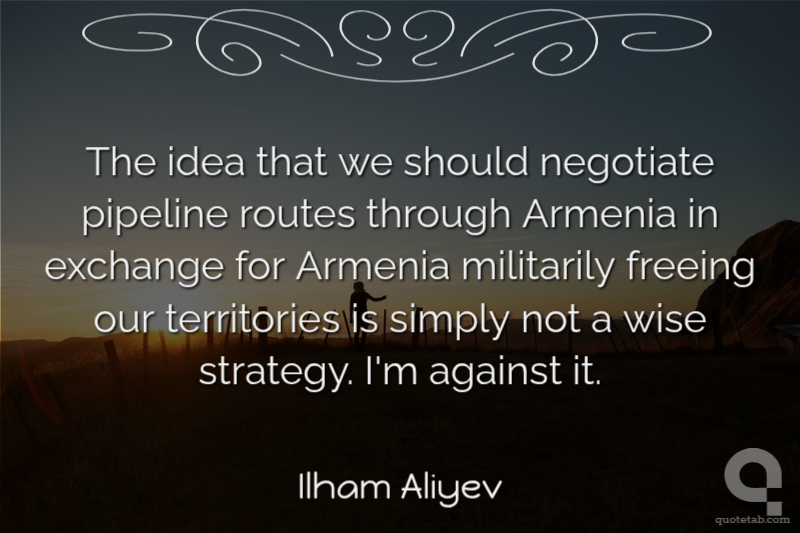 The idea that we should negotiate pipeline routes through Armenia in exchange for Armenia militarily freeing our territories is simply not a wise strategy. I'm against it.