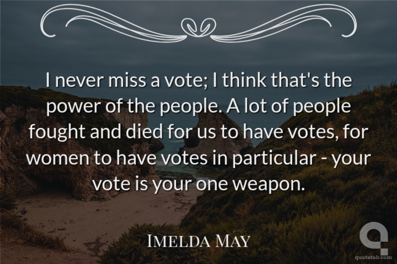 I never miss a vote; I think that's the power of the people. A lot of people fought and died for us to have votes, for women to have votes in particular - your vote is your one weapon.