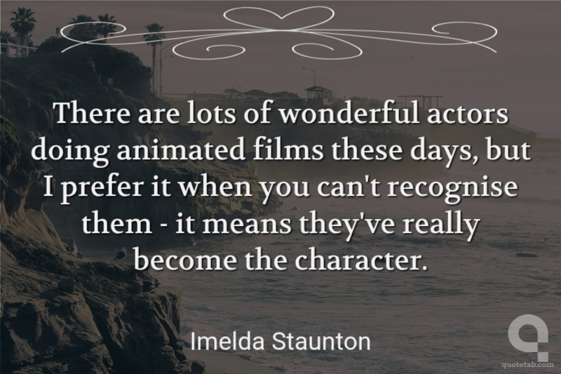 There are lots of wonderful actors doing animated films these days, but I prefer it when you can't recognise them - it means they've really become the character.
