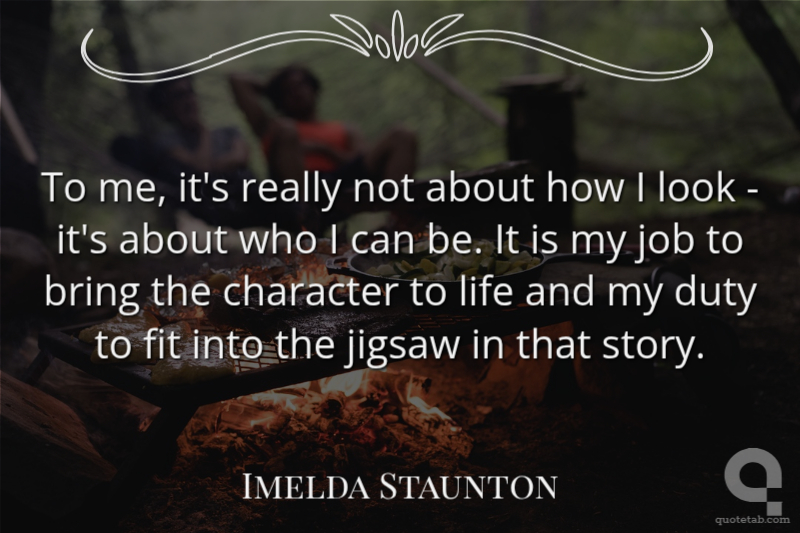 To me, it's really not about how I look - it's about who I can be. It is my job to bring the character to life and my duty to fit into the jigsaw in that story.