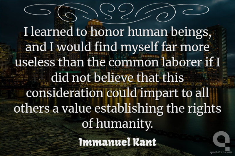 I learned to honor human beings, and I would find myself far more useless than the common laborer if I did not believe that this consideration could impart to all others a value establishing the rights of humanity.