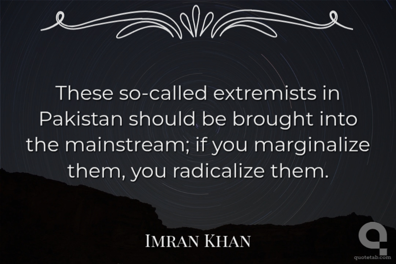 These so-called extremists in Pakistan should be brought into the mainstream; if you marginalize them, you radicalize them.