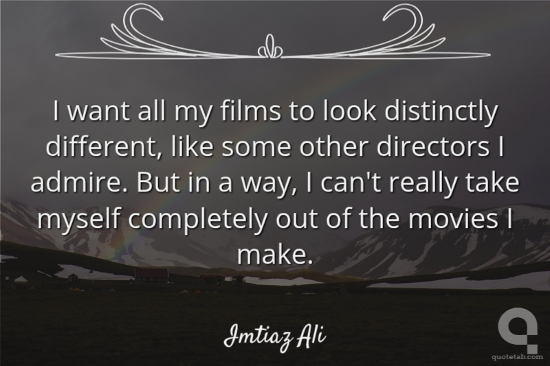 I want all my films to look distinctly different, like some other directors I admire. But in a way, I can't really take myself completely out of the movies I make.