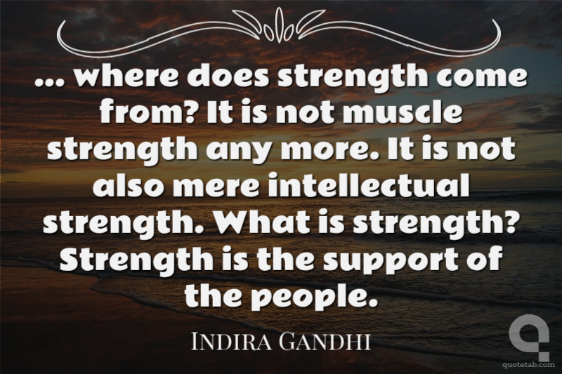 ... where does strength come from? It is not muscle strength any more. It is not also mere intellectual strength. What is strength? Strength is the support of the people.