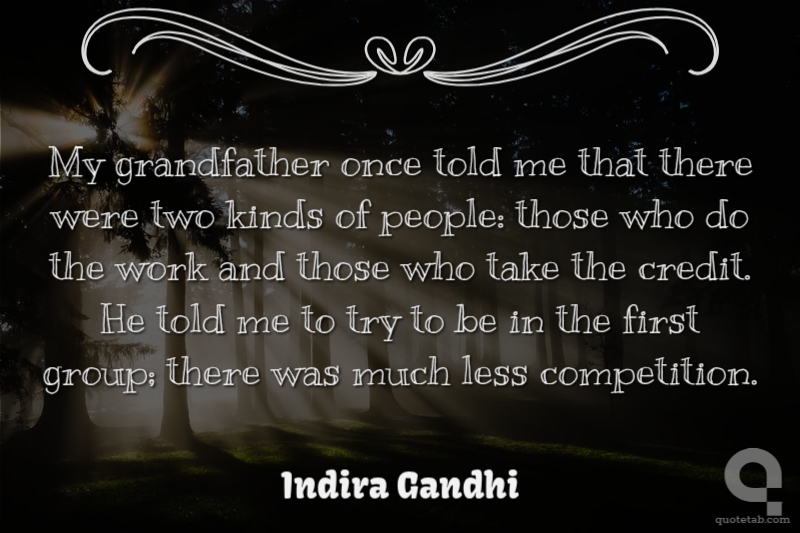 My grandfather once told me that there were two kinds of people: those who do the work and those who take the credit. He told me to try to be in the first group; there was much less competition.