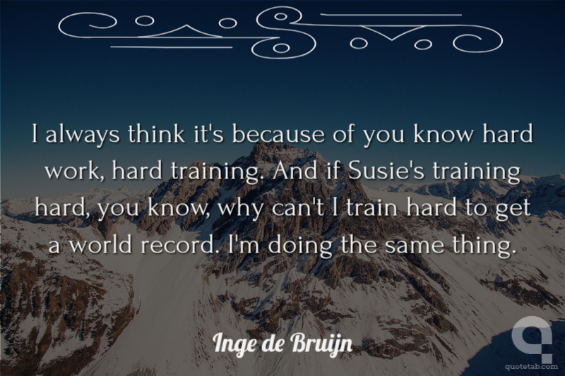 I always think it's because of you know hard work, hard training. And if Susie's training hard, you know, why can't I train hard to get a world record. I'm doing the same thing.
