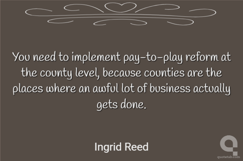 You need to implement pay-to-play reform at the county level, because counties are the places where an awful lot of business actually gets done.