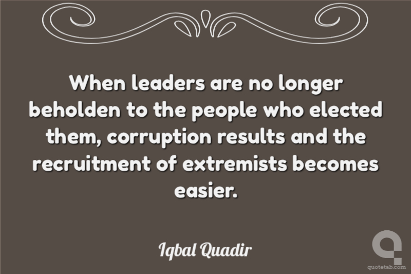 When leaders are no longer beholden to the people who elected them, corruption results and the recruitment of extremists becomes easier.
