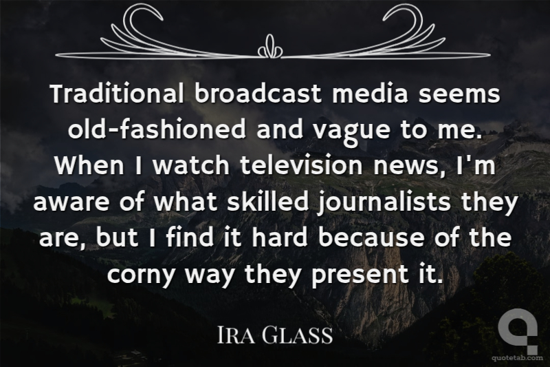 Traditional broadcast media seems old-fashioned and vague to me. When I watch television news, I'm aware of what skilled journalists they are, but I find it hard because of the corny way they present it.