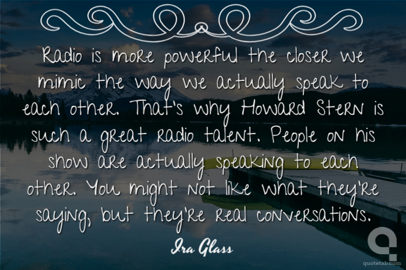 Radio is more powerful the closer we mimic the way we actually speak to each other. That's why Howard Stern is such a great radio talent. People on his show are actually speaking to each other. You might not like what they're saying, but they're real conversations.